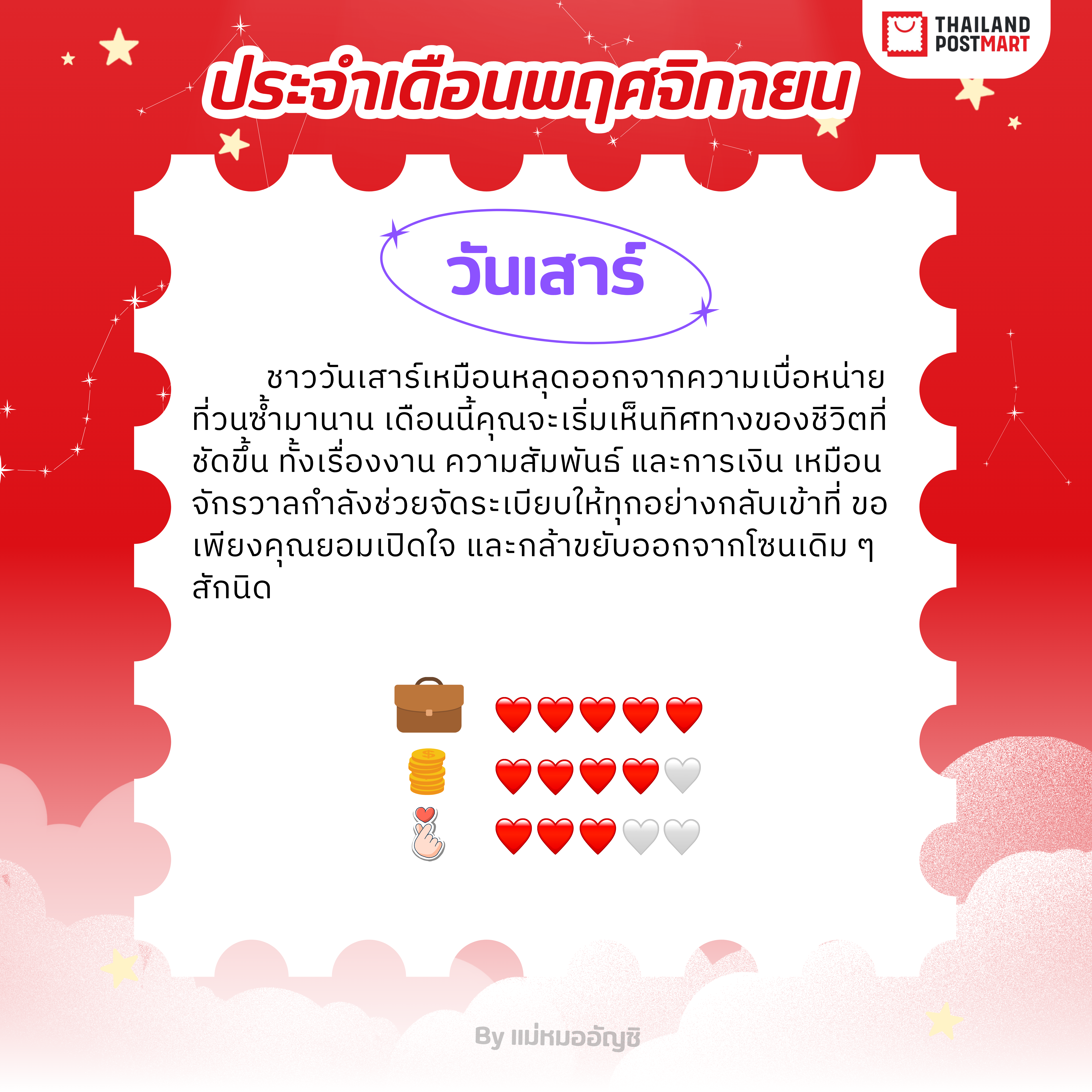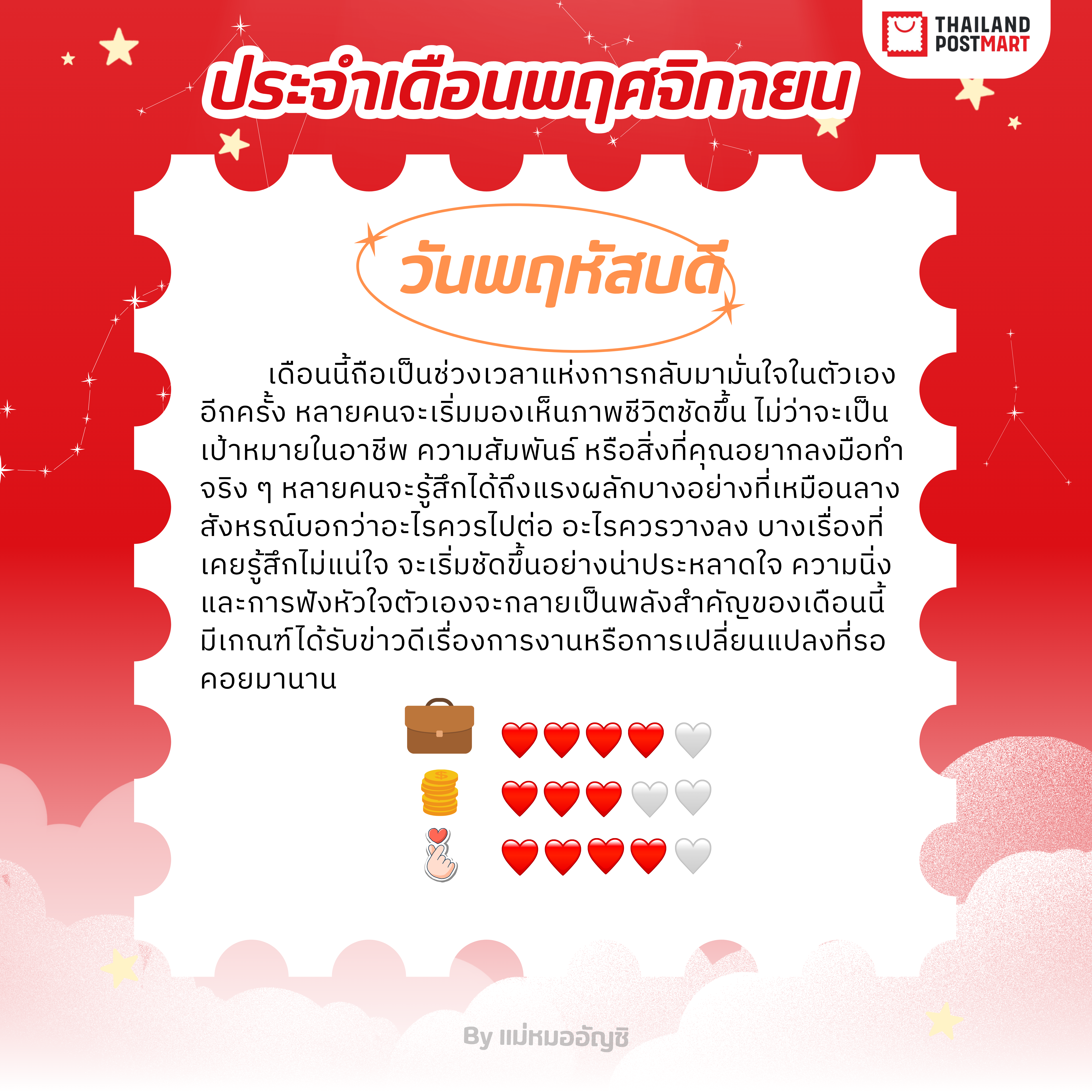 เดือนนี้การงานมีความมั่นคง และจะมีโอกาสใหม่เข้ามา คุณอาจได้รับมอบหมายงานใหญ่ โปรเจกต์สำคัญ หรือมีผู้ใหญ่หยิบยื่นโอกาสให้พิสูจน์ตัวเอง หากคุณเป็นฟรีแลนซ์หรือเจ้าของธุรกิจ เตรียมรับลูกค้าใหม่ที่มาพร้อมรายได้ระยะยาว