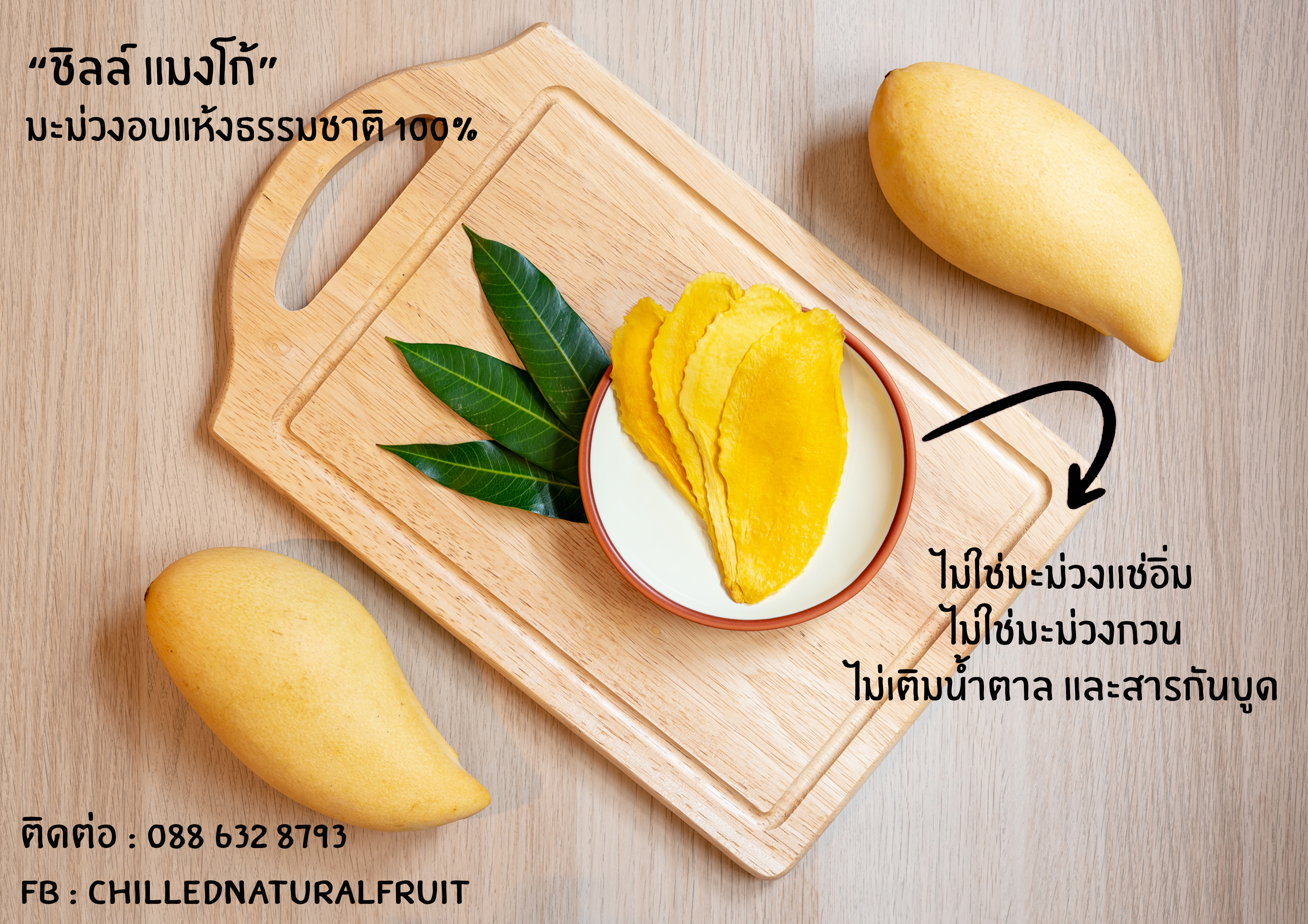 มะม่วงอบแห้ง Chilled Mango ผ่านกระบวรการผลิตอย่างพิถีพิถัน สูตรธรรมชาติ100% ไม่เติมเเต่งสารเคมีใดใด และเหมาะสำหรับกลุ่มผู้แพ้สารซัลไฟด์ ได้รับรางวัล รับรองมาตราฐานจากกรมวิชาการเกษตร GAP จากแปลงเกษตร GMP & HACCP