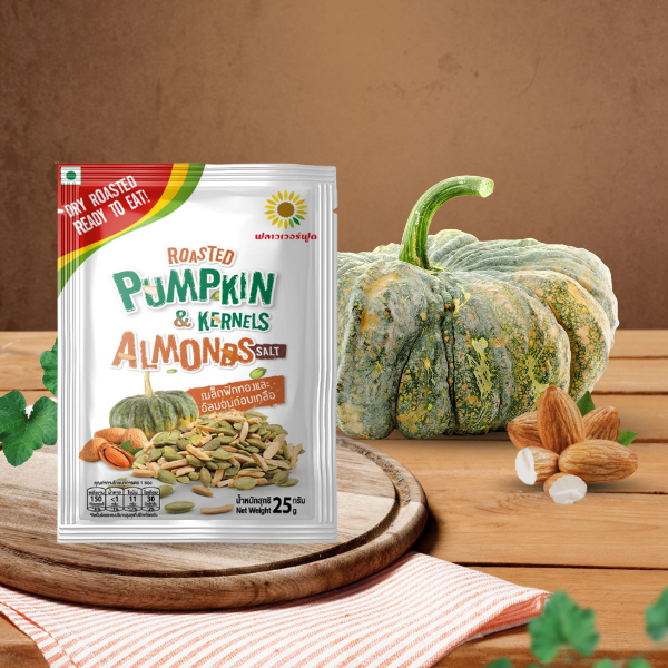 เคี้ยวเพลิน กรอบมัน อร่อย ไม่เหมือนใคร มีรสเค็มเล็กน้อย พร้อมเมล็ดฟักทองและอัลมอนด์ ส่วนผสมที่เข้ากันอย่างลงตัว
