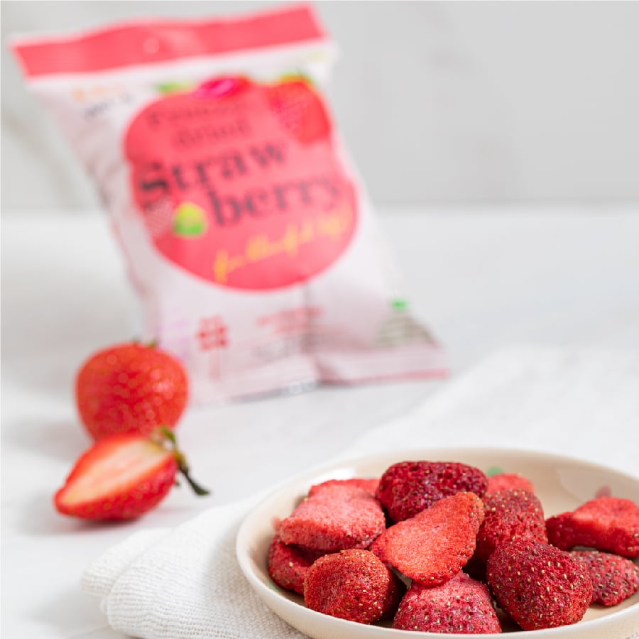 Wel-B Freeze-dried Strawberry ผลไม้กรอบจากสตรอว์เบอร์รี่แท้ 100% ผลิตด้วยกระบวนการ Freeze-Dried ที่ช่วยรักษาโครงสร้างและคุณค่าทางอาหารไว้อย่างครบถ้วน ไม่ใส่น้ำมัน ไม่ใส่น้ำตาล ไม่ใส่เกลือ ไม่มีวัตถุกันเสีย และไม่แต่งกลิ่นหรือสี เหมาะสำหรับเด็กตั้งแต่ 36 เดือนขึ้นไป