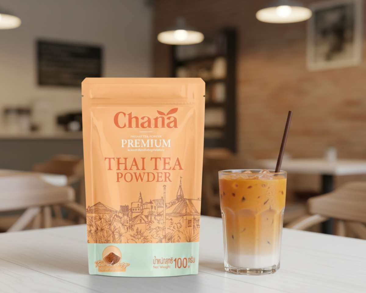 ชานะ เครื่องดื่มชาไทยชนิดผง ขนาดบรรจุ 100 กรัม บรรจุในซองตั้งได้ มีซิปเปิด-ปิด ใช้งานสะดวก น้ำหนักเบา ขนส่งง่าย