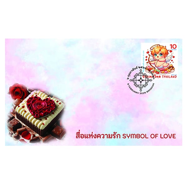 สินค้าที่จะได้รับ : ซองวันแรกจำหน่าย สื่อแห่งความรัก 2569 ชุด 2 จำนวน 1 ซอง