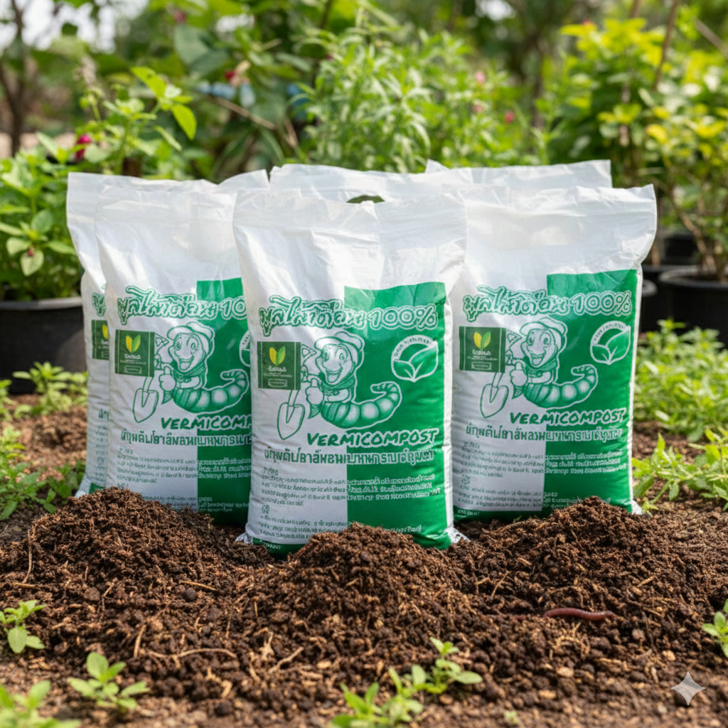 ความลับจากธรรมชาติ เพื่อการเติบโตที่สมบูรณ์แบบของพืชพันธุ์ ผลิตจากไส้เดือนสายพันธุ์ African Nightcrawler (AF) * ไส้เดือนสายพันธุ์นี้ขึ้นชื่อเรื่องความแข็งแรงและการย่อยสลายอินทรียวัตถุได้รวดเร็ว ทำให้ได้มูลที่มีเนื้อละเอียด ร่วนซุย และอุดมไปด้วยจุลินทรีย์ที่มีประสิทธิภาพสูง ใช้ "มูลวัวนม" คัดเกรดเป็นอาหารหลักให้ไส้เดือน ผ่านกระบวนการ "หมักเย็น" (Pre-compost) นานถึง 1 เดือนเต็ม เพื่อกำจัดก๊าซความร้อน ลดกลิ่นไม่พึงประสงค์ และกำจัดเมล็ดวัชพืชที่ปนมา ก่อนจะส่งต่อให้กองทัพไส้เดือนช่วยย่อยสลายจนกลายเป็น "ทองคำดำ" ของเกษตรกร