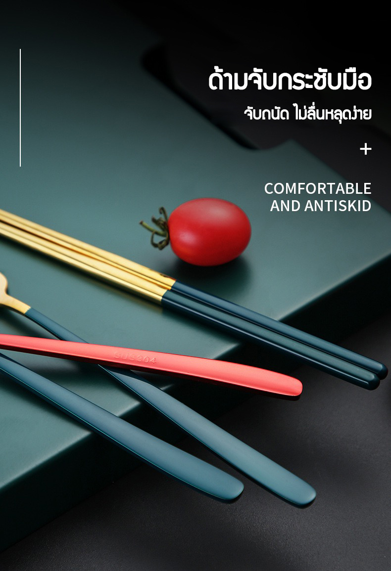 - ชุดช้อนส้อม ตะเกียบ สแตนเลสแท้ สไตล์เกาหลี