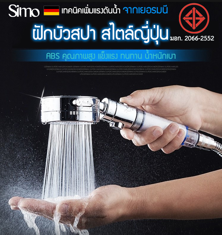 Simo - ฝักบัว ฝักบัวอาบน้ำ สไตล์ญี่ปุ่น เทคนิคเยอรมัน ฝักบัวญี่ปุ่น ฝักบัวอาบน้ำสปา สไตล์ญี่ปุ่น เทคนิคเพิ่มแรงดันน้ำจากเยอรมนี มีไส้กรองน้ำในตัว น้ำสะอาด สุขภาพผิวดี ปรับสายน้ำได้ถึง 3 ระดับ สวยงาม หรูหรา