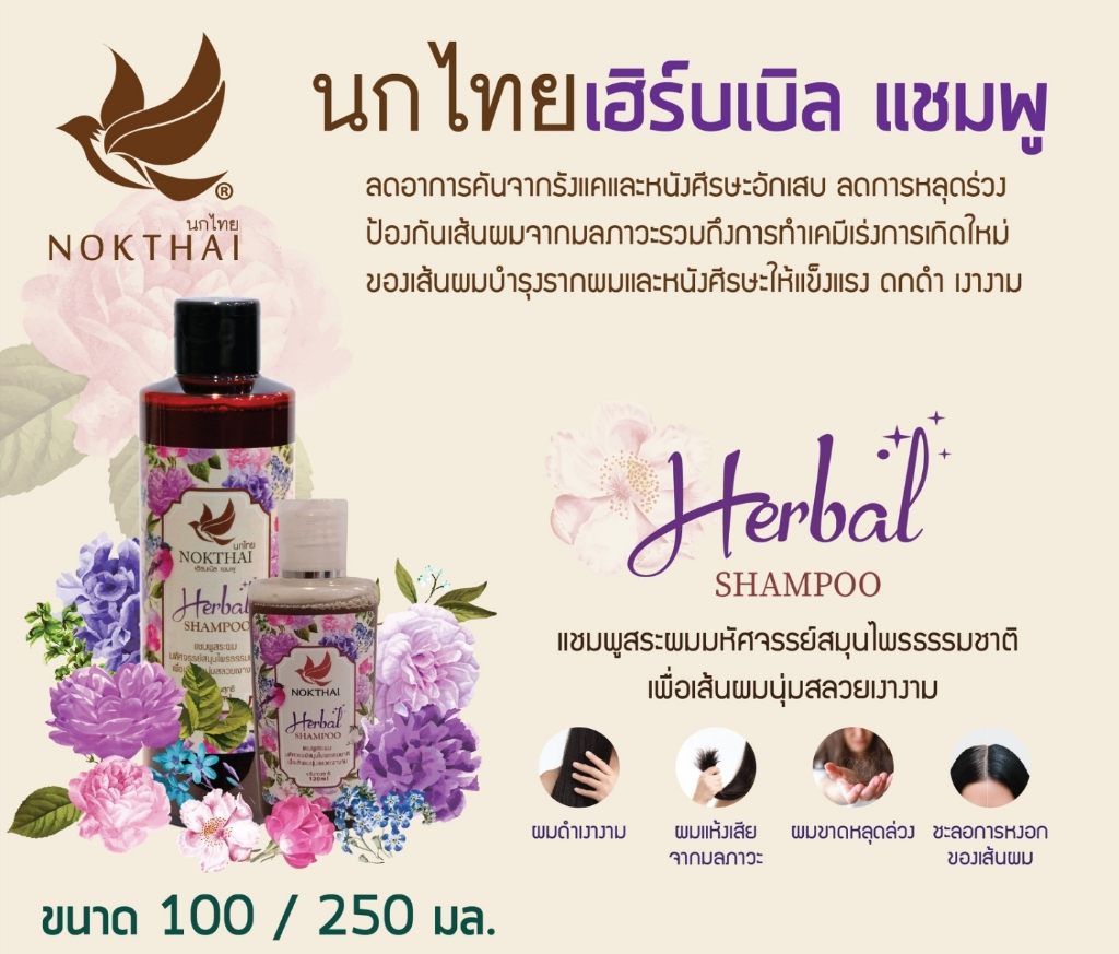 แชมพูนกไทย เฮอร์เบิลฟ แชมพู ยาสระผม - 250 มล. (แถมยาสีฟันนกไทย ขนาด 15g x 1 ชิ้น)