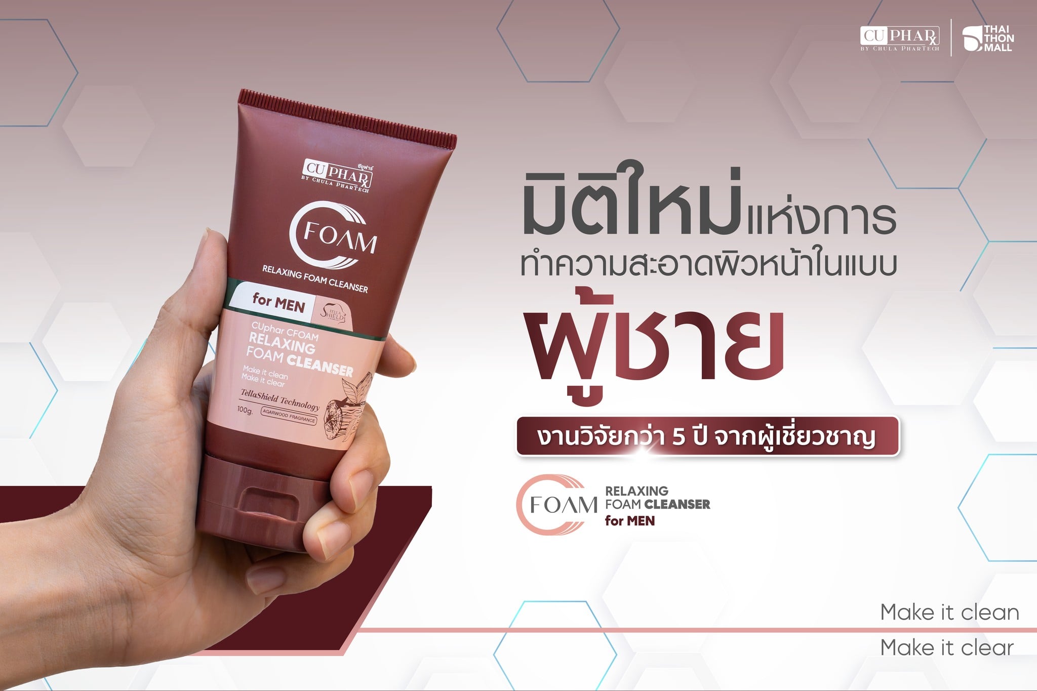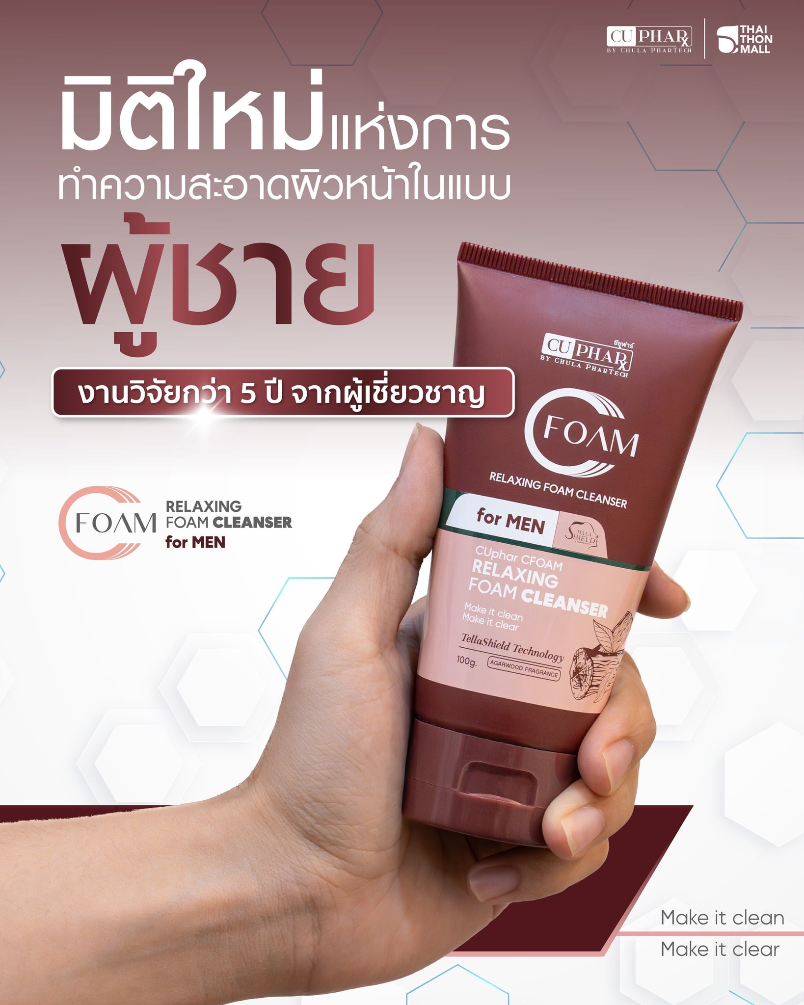 Cfoam for MEN โฟมล้างหน้าที่ออกแบบเพื่อผิวผู้ชายโดยเฉพาะด้วยนวัตกรรม TellaShield? งานวิจัยกว่า 5 ปี จากแบรนด์ CUphar by CHULA PHARTECH ขนาดอนุภาคเฉลี่ย ไมครอน (เล็กกว่ารูขุมขน) ช่วยทำความสะอาดล้ำลึก โดยไม่ชะล้างไขมันดีที่จำเป็นต่อผิว
