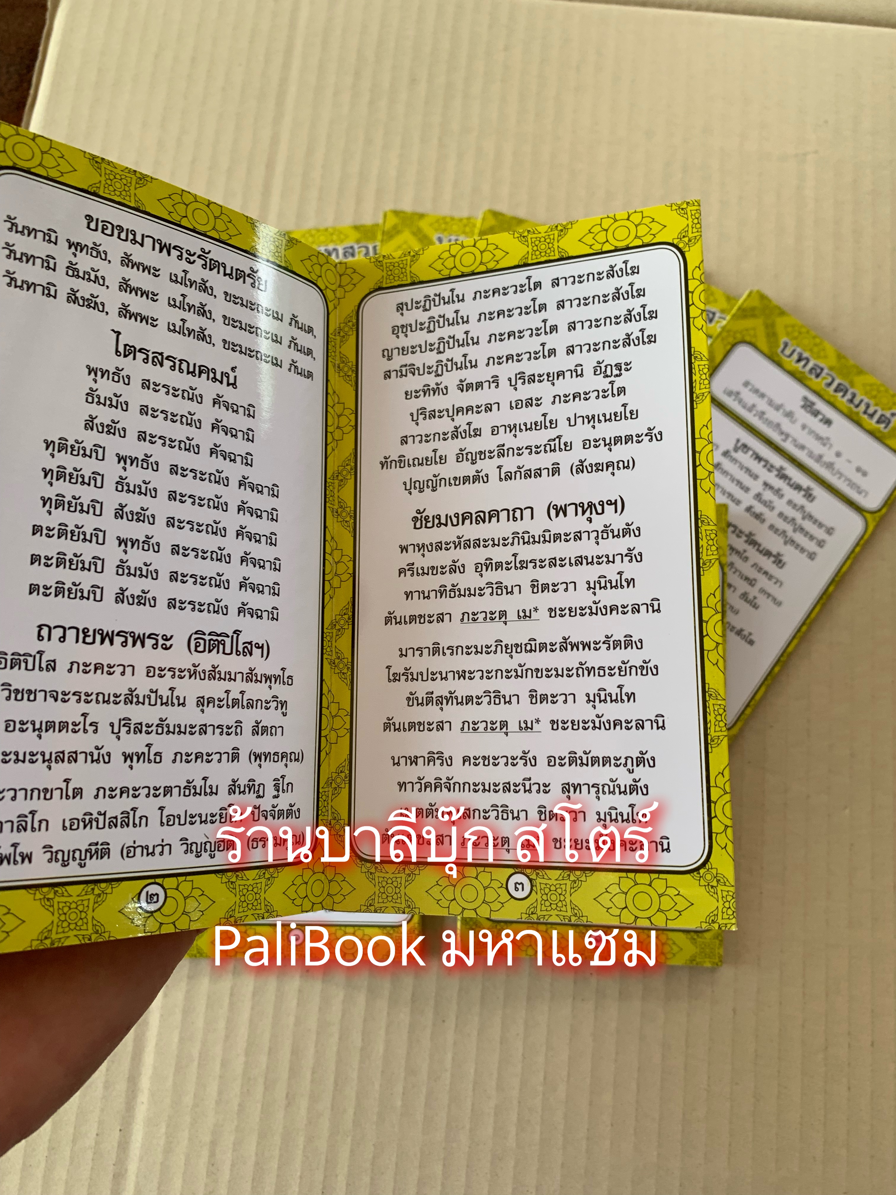 แพ็ค 10 เล่ม แบบสั้น - แผ่นพับ สมุดข่อย บทสวดมนต์ (กระดาษมันเงา แบบสั้น ขนาด 9x16cm) [ล.ซ.] ไตรสรณคมน์ อิติปิโส พาหุง มหาการุณิโก ชินบัญชร แผ่เมตตา กรวดน้ำ คาถาเงินล้าน - หนังสือ ร้านบาลีบุ๊ก Palibook มหาแซม