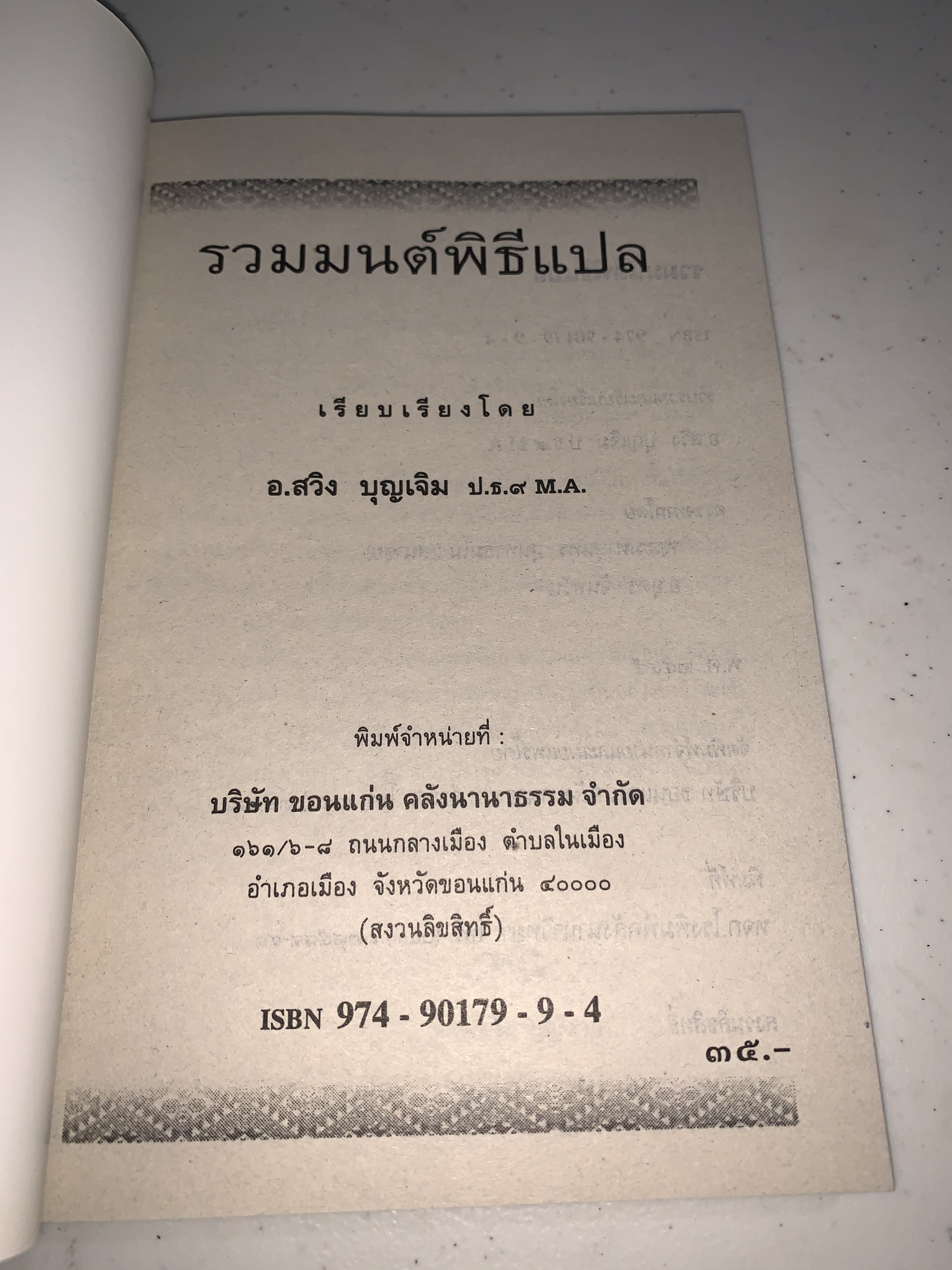 รวมมนต์พิธีแปล (ปกม่วง เล่มใหญ่ กระดาษปรุ๊พ สีเทา) - [๑๐๔] - สวดมนต์ 7 ตำนาน 12 ตำนานและบทอื่นๆ มีคำแปลครบทุกบท - อ.สวิง บุญเจิม ป.ธ.9 - พิมพ์โดยคลังนานาธรรม - จำหน่ายโดย ร้านบาลีบุ๊ก