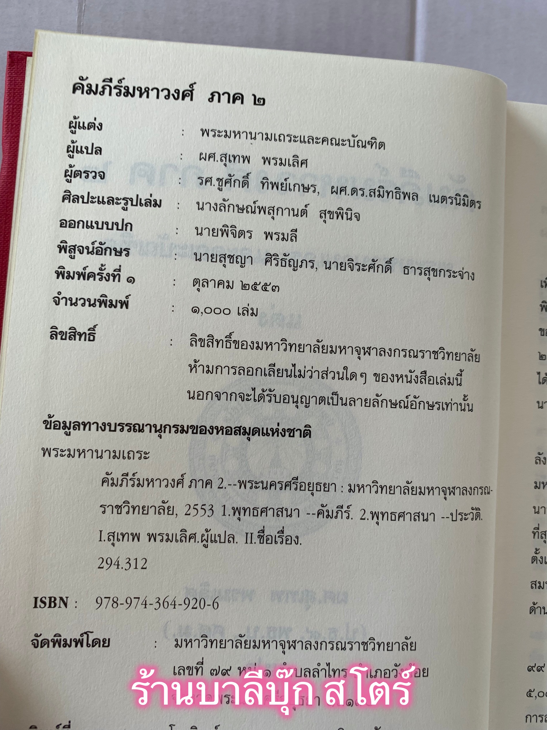 คัมภีร์มหาวงศ์ ภาค 2 แปลไทย - หนังสือวรรณกรรมประวัติศาสตร์ บันทึกเหตุการณ์ในยุคต้นของลังกาทวีป รจนาขึ้นเมื่อราวศตวรรษที่ 5 - โดยพระมหาเถระ มหานามะ - ร้านบาลีบุ๊ก สโตร์ มหาแซม