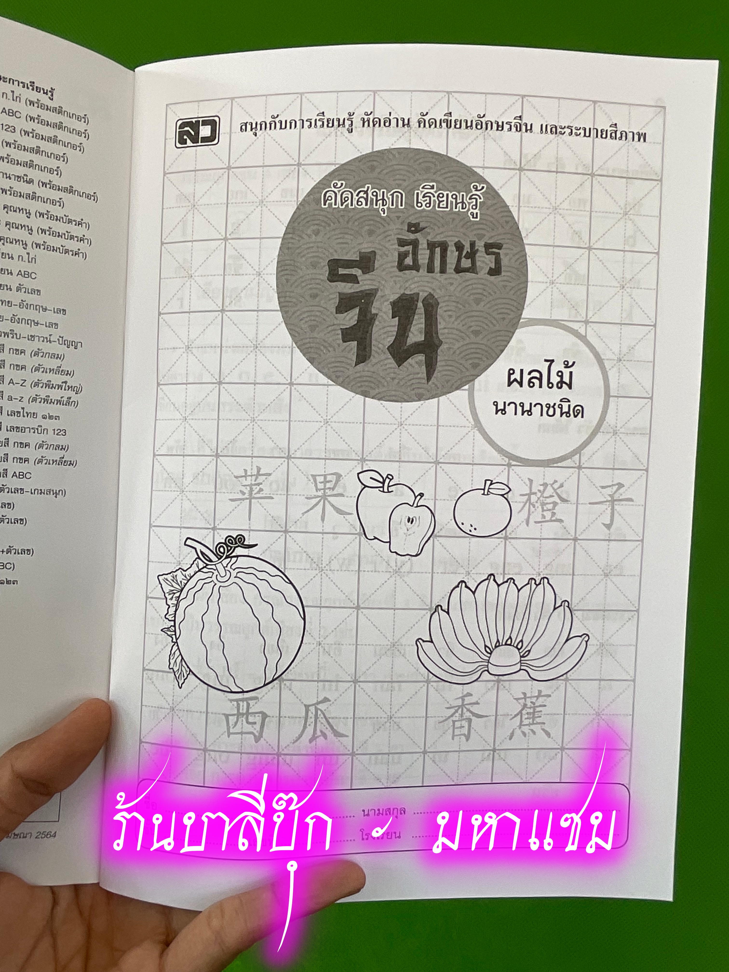 คัดสนุกเรียนรู้ อักษรจีน (ผลไม้นานาชนิด) - [ภาษาจีน No.4] - (18.5x26cm 40 หน้า) สนุกกับการเรียนรู้ คัดเขียนอักษรจีน และระบายสีภาพคำศัพท์ภาษาจีน และตัวอย่างประโยคเพื่อการใช้งานในชีวิตประจำวัน - ร้านบาลีบุ๊ก มหาแซม