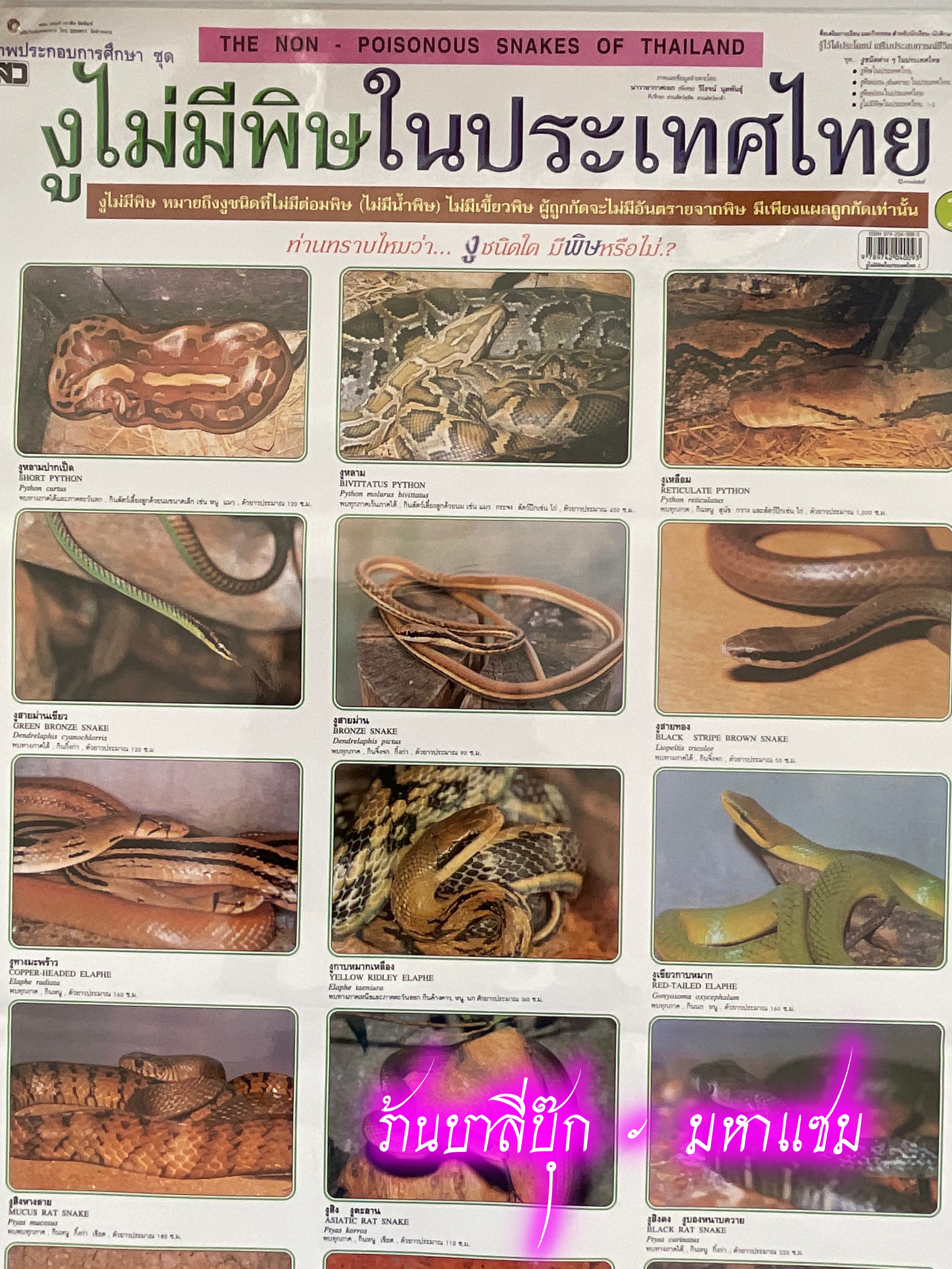 โปสเตอร์งูไม่มีพิษในประเทศไทยชุด 1 - [No.27] - (53x78cm กระดาษอาร์ตมัน 4 สี แบบหุ้มพลาสติก) แผ่นภาพประกอบการศึกษา - ร้านบาลีบุ๊ก มหาแซม