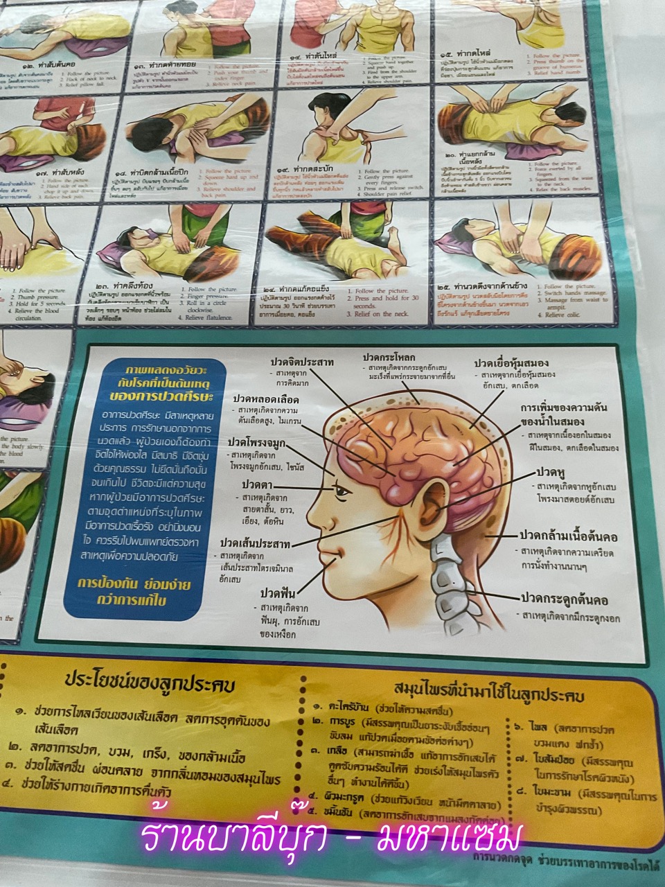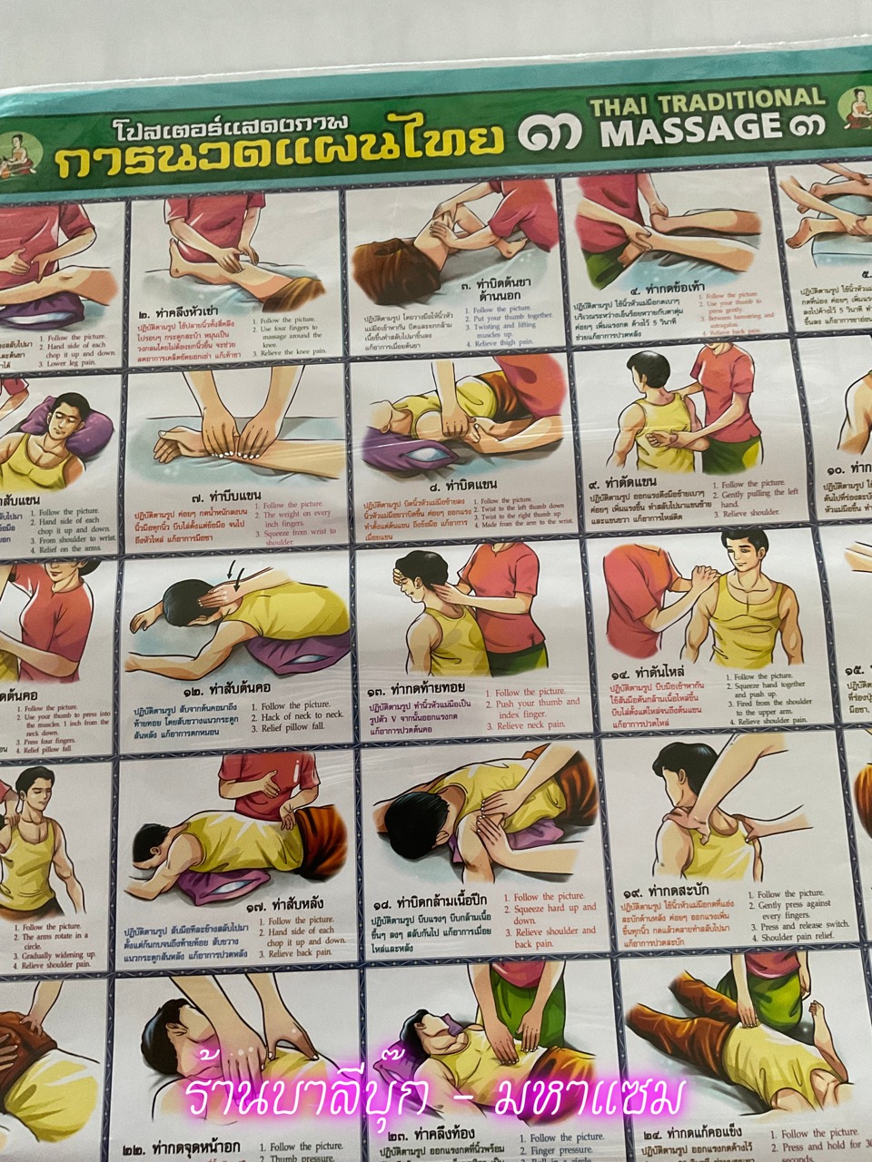 โปสเตอร์การนวดแผนไทย 3 - [No.72] - (Thai traditional massage) (1 แผ่น) นวดแผนไทยแผนโบราณเพื่อสุขภาพ (53x78cm กระดาษอาร์ตมัน 4 สี แบบหุ้มพลาสติก) แผ่นภาพประกอบการศึกษา มีภาพและคำอธิบาย - ร้านบาลีบุ๊ก มหาแซม
