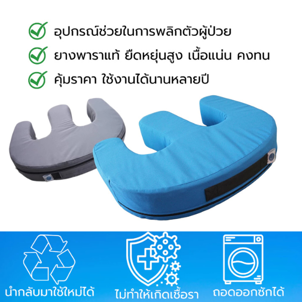 - พลิกตัวอย่างถูกวิธี - ใช้เบาะช่วยในการพลิกตัวผู้ป่วยโดยจับที่ปีกด้านข้างของเบาะ เพื่อช่วยให้การพลิกตัวทำได้อย่างนุ่มนวลและปลอดภัย