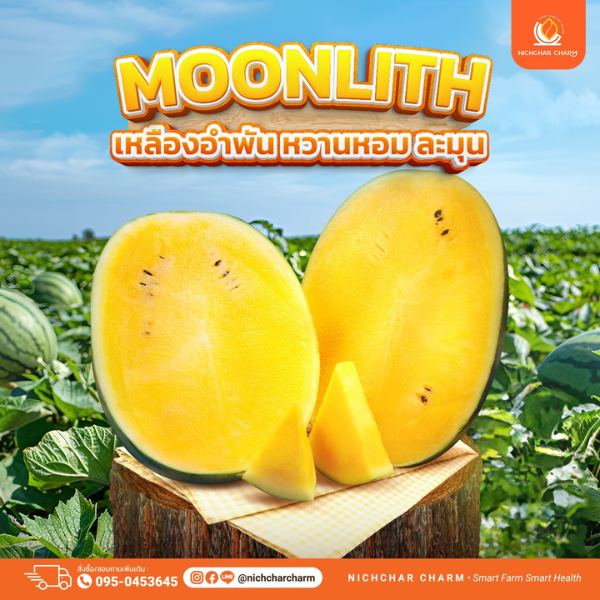แตงโมมูนลิท ไซส์ M (2.7 ถึง 3.2 กก.) 1 ลูก หวานละมุนกำลังดี เนื้อแน่น กรอบ ฉ่ำ
