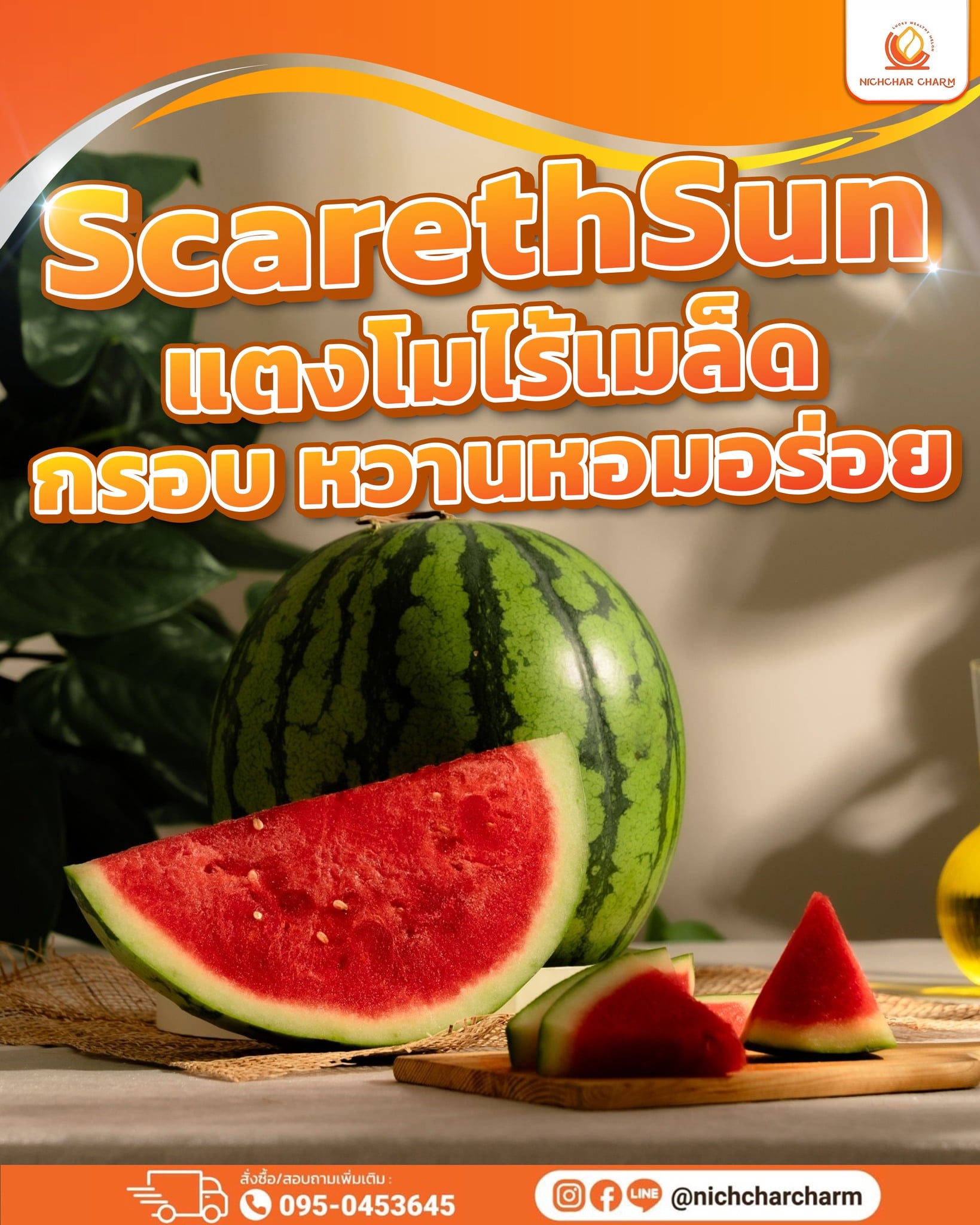 แตงโมไร้เมล็ด Scarleth Sun คัดสรรผลคุณภาพ เนื้อสีแดงเข้มฉ่ำตา โดดเด่นด้วยความหวานกำลังดี ไม่เลี่ยนจนเกินไป เคี้ยวแล้วรู้สึกสดชื่นทุกคำ กลิ่นหอมละมุนแบบธรรมชาติ ช่วยเติมพลังให้วันธรรมดากลายเป็นวันพิเศษ เหมาะทั้งกินเล่น คลายร้อน หรือเสิร์ฟในมื้อพิเศษกับครอบครัว