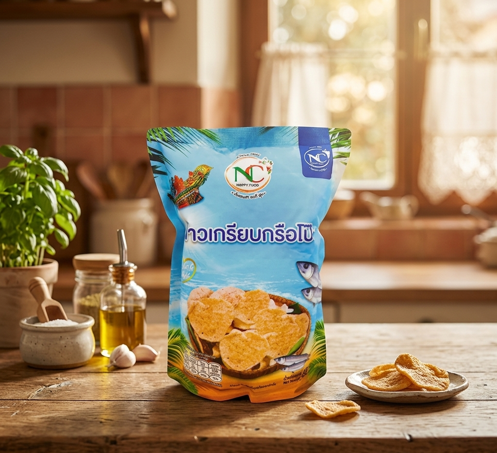 - วิธีเก็บรักษา: เพื่อคงความกรอบให้อยู่นาน ควรปิดปากถุงให้สนิททุกครั้งหลังทาน และเก็บไว้ในที่แห้ง