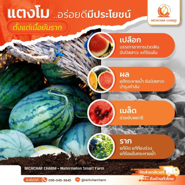 - แตงโมเนื้อสีแดงคุณภาพพรีเมียม ที่โดดเด่นทั้งรูปลักษณ์และรสชาติ