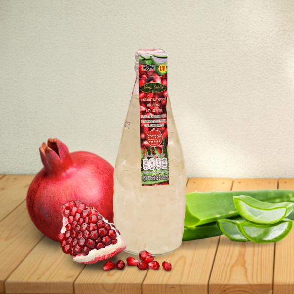 เครื่องดื่มเพื่อสุขภาพจาก ว่านหางจระเข้แท้ผสมรสน้ำทับทิม หอม อร่อย สดชื่น เหมาะกับคนรักสุขภาพ และใส่ใจการดูแลตัวเองทุกวัน ผลิตโดย กลุ่มแปรรูปผลิตผลทางการเกษตรสามร้อยยอด จังหวัดประจวบคีรีขันธ์ ซึ่งเป็นผู้ผลิตสินค้า OTOP 5 ดาว ที่ได้รับการยอมรับในคุณภาพ