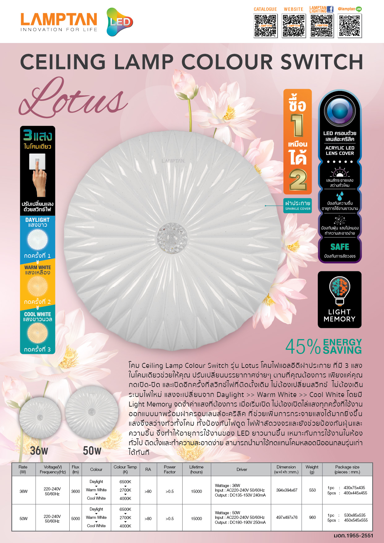 โคม Ceiling Lamp Colour Switch รุ่น LOTUS