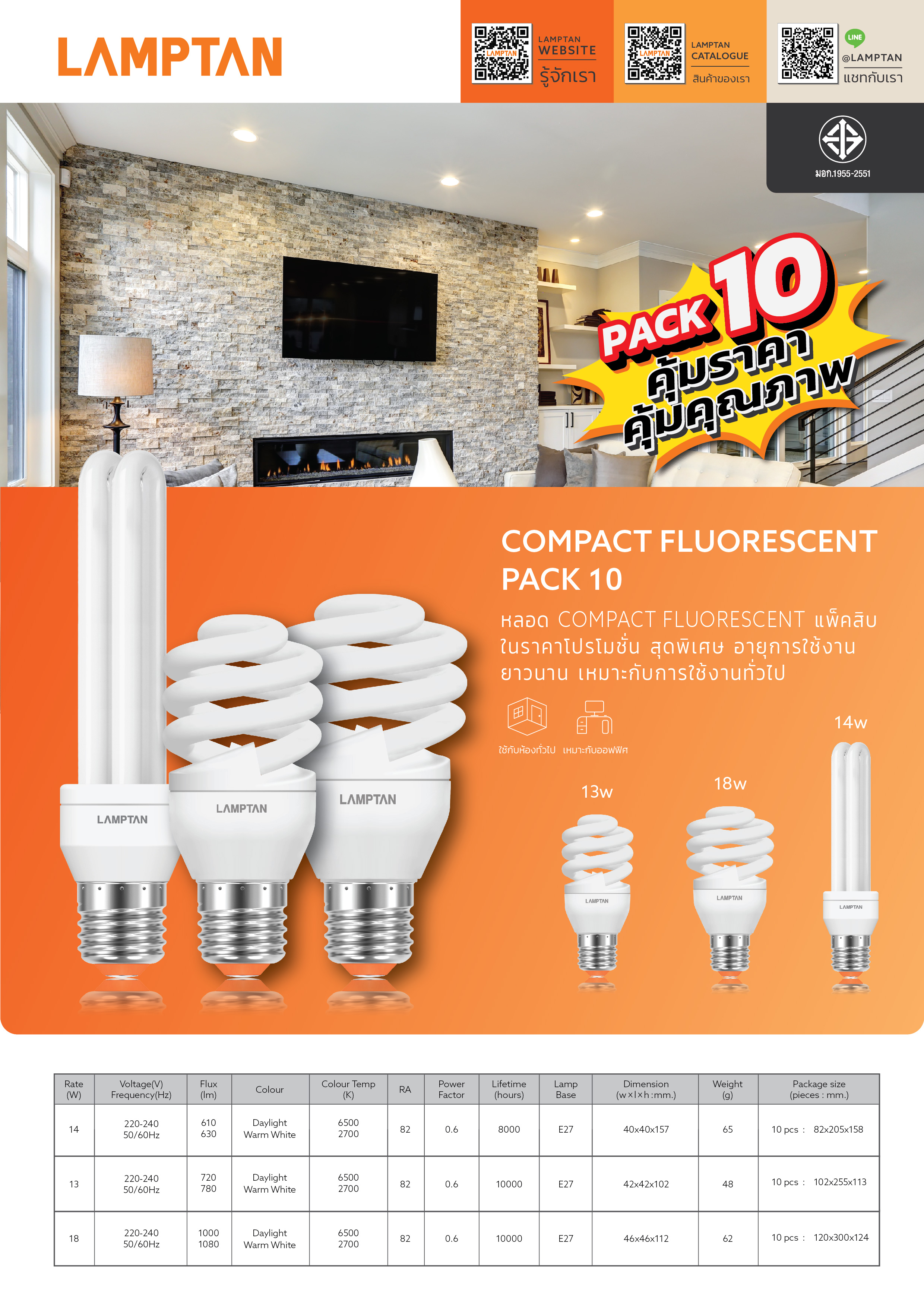 COMPACT FLUORESCENT แพ็ค10ชิ้น คุ้มราคา!! คุ้มคุณภาพ!!